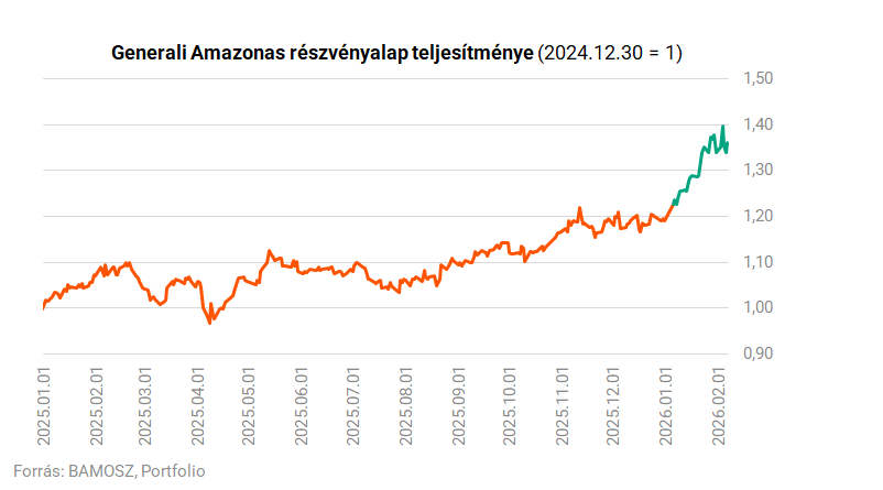 Ha valaki magyar befektetési alappal szeretné megjátszani a sztorit, szintén talál erre alkalmas eszközt, például a latin-amerikai fókuszú Generali Amazonas részvényalap benchmarkja 80%-ban a fentebb említett S&P Latin America 40 index, így a befektetések mintegy 47%-a brazil részvényekben dolgozhat. A lendület persze ezt a befektetést is viszi magával, az Amazonas alap az idei év eddigi időszakában az egyik legjobban teljesítő magyar részvényalapnak bizonyult, bő egy hónap elteltével 16%-os pluszban van, miközben a forint is erősödött.