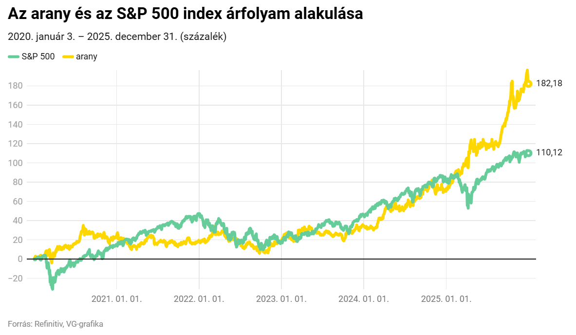 • az arany 183 százalékkal került feljebb (évesítve 18,9 százalék),